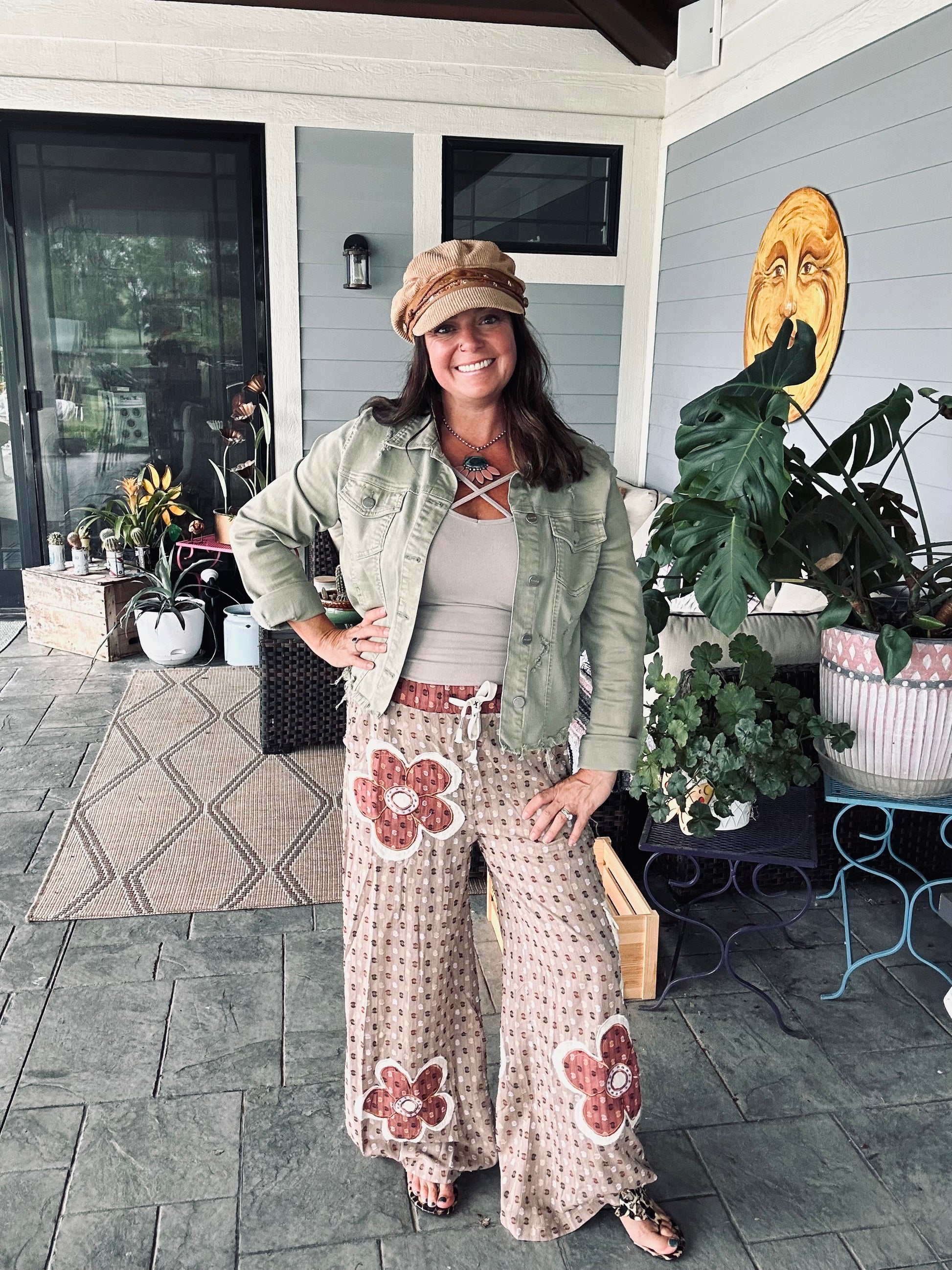 These little light weight draw string pants make a big statement! Perfect for August!