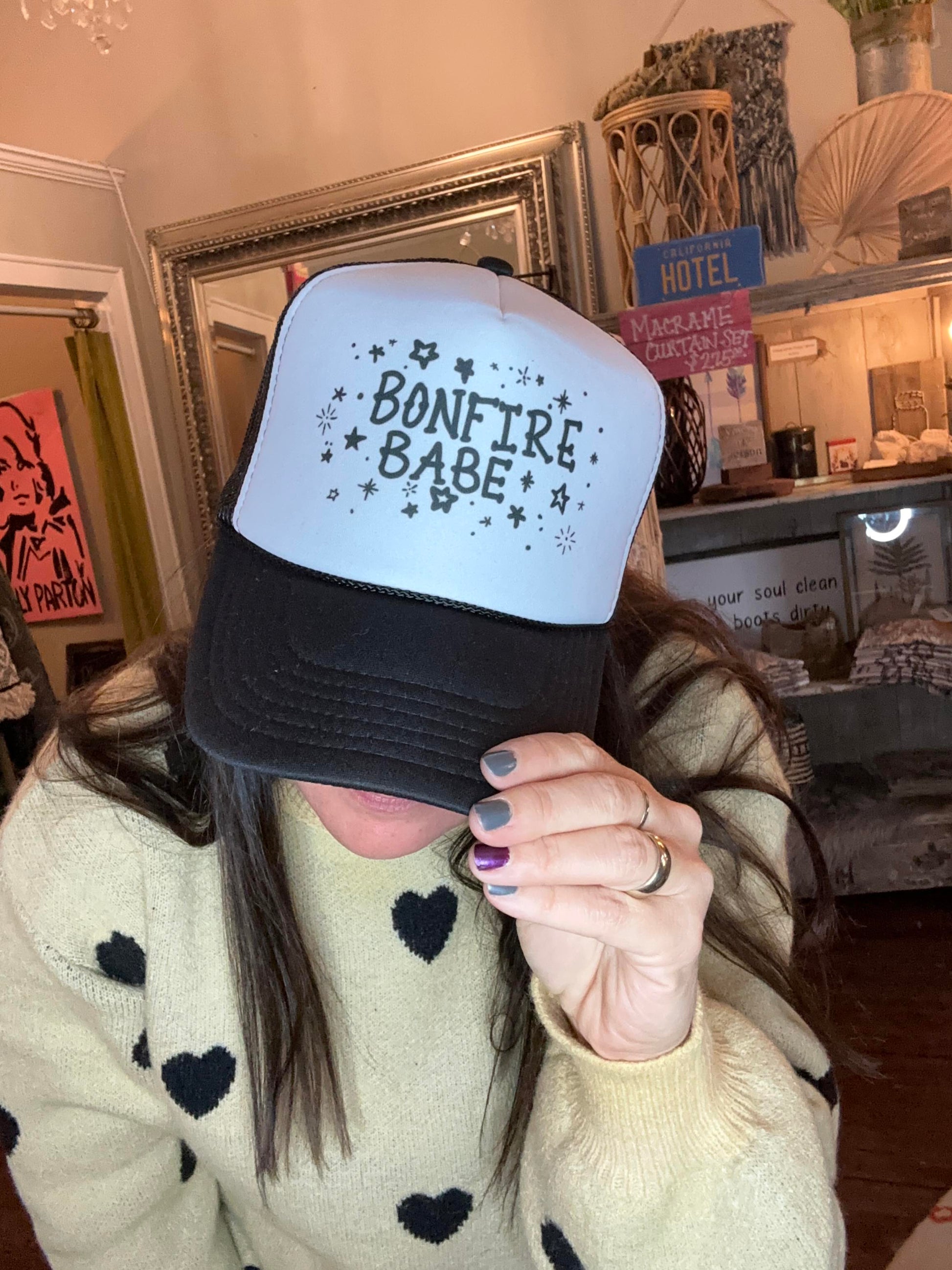 This "Bonfire Babe" trucker cap is great for your next bonfire with your friends 🔥