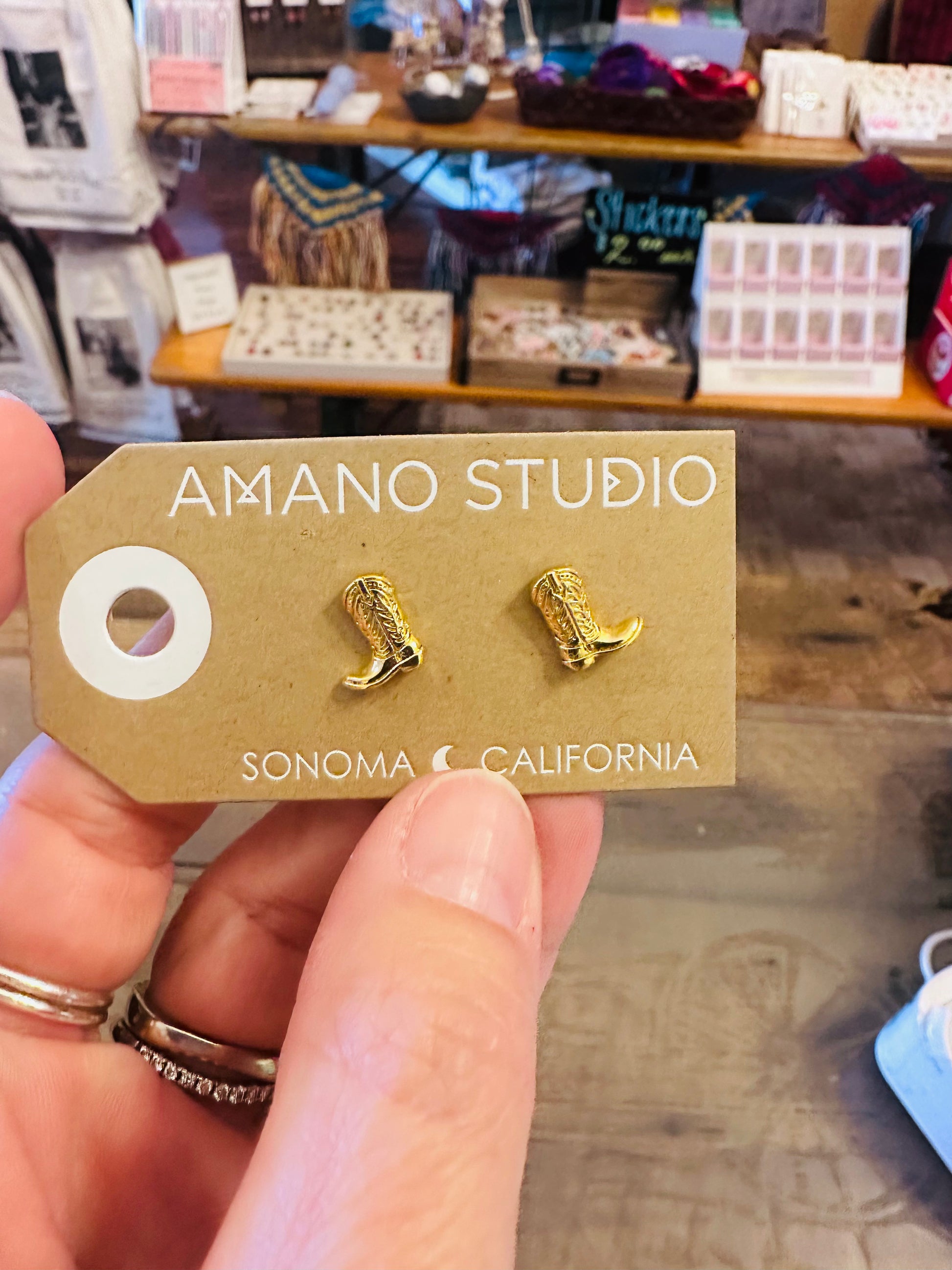 Part of our Wester Desert collection, these charming 10mm cowboy boot stud earrings are the perfect thing for the Wild West. Made of 14k gold plated brass, lead and nickel free.