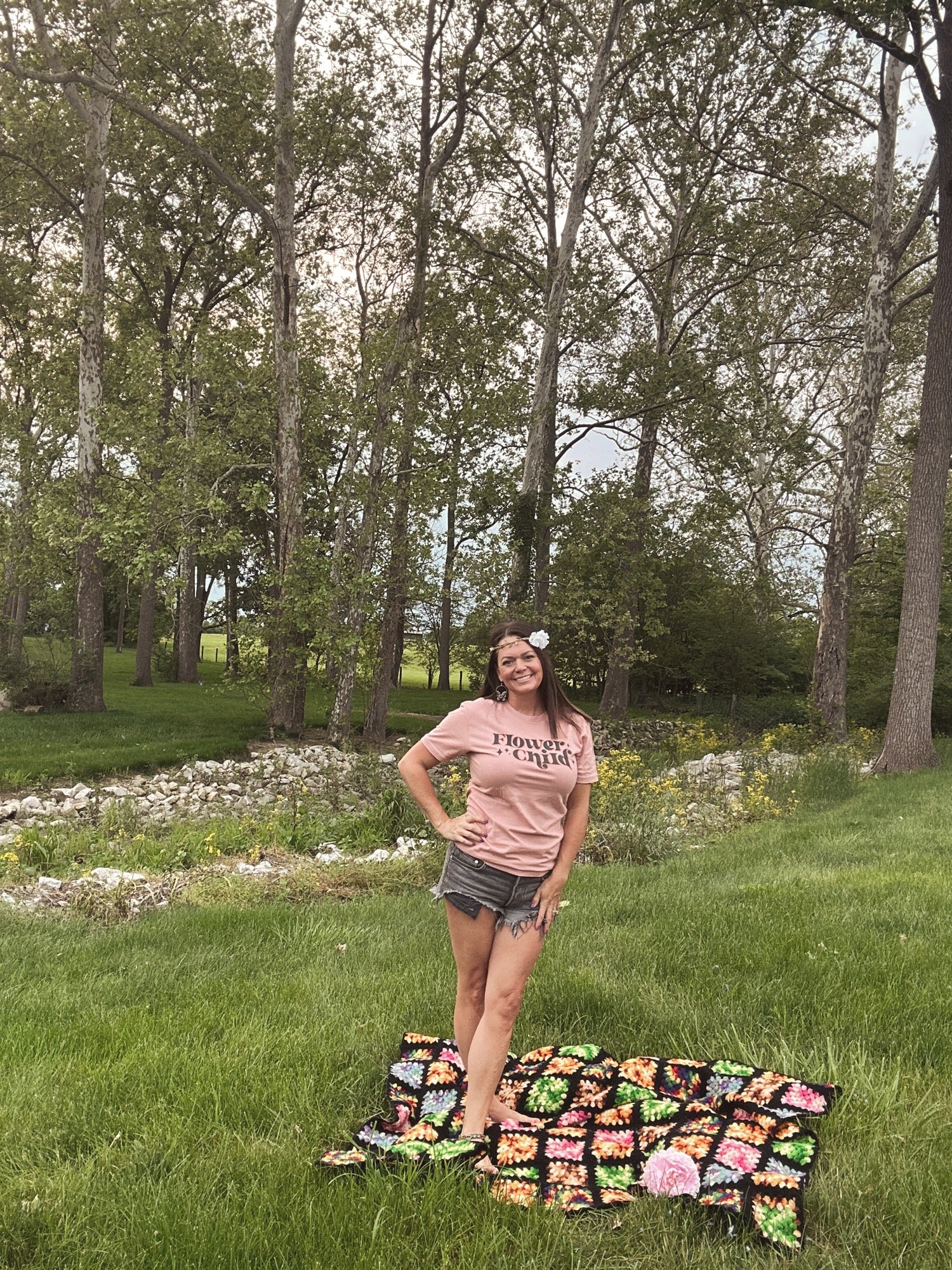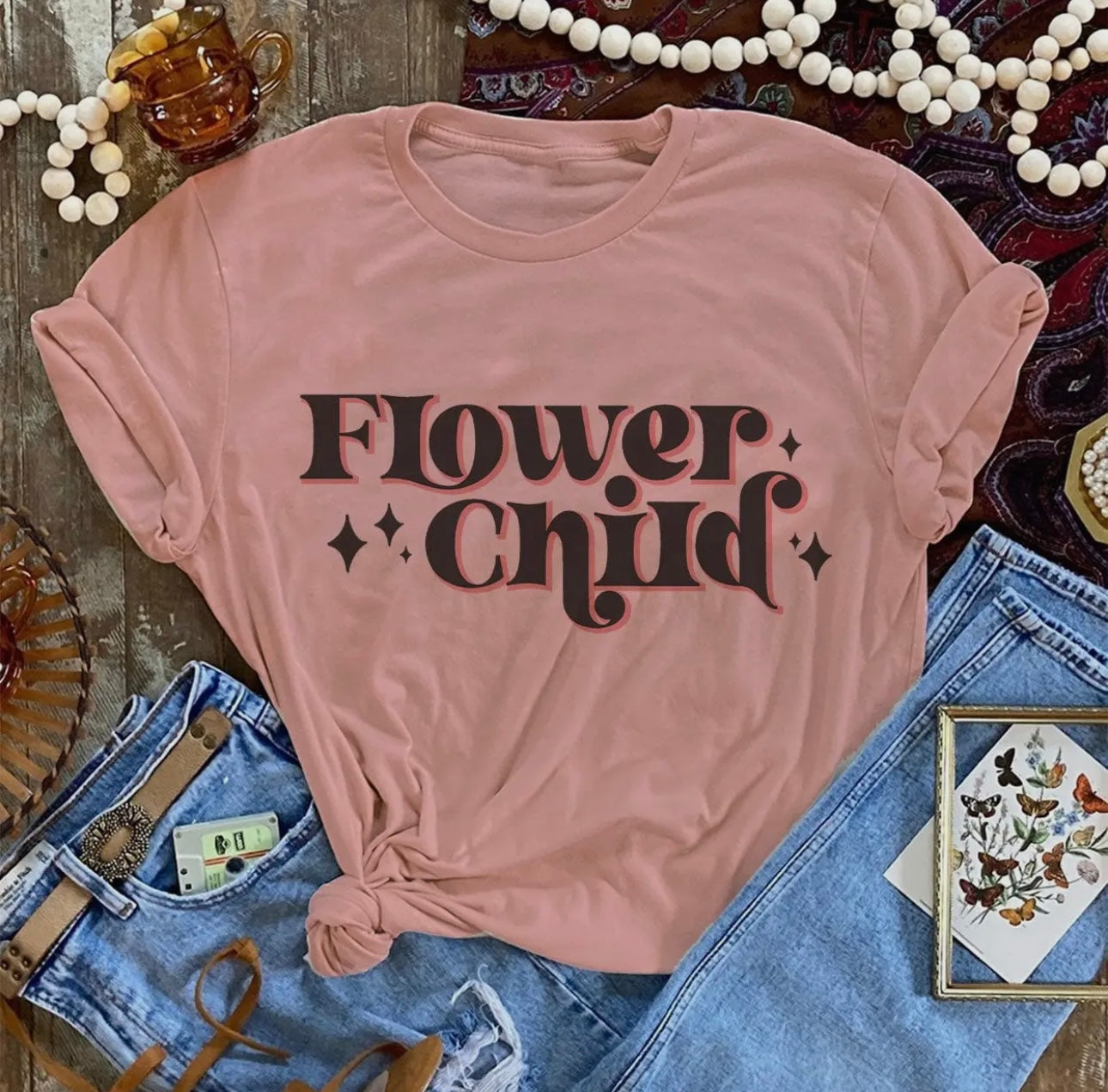 This Dusty Rose Color is so beautiful to showcase our Flower Child Tee.