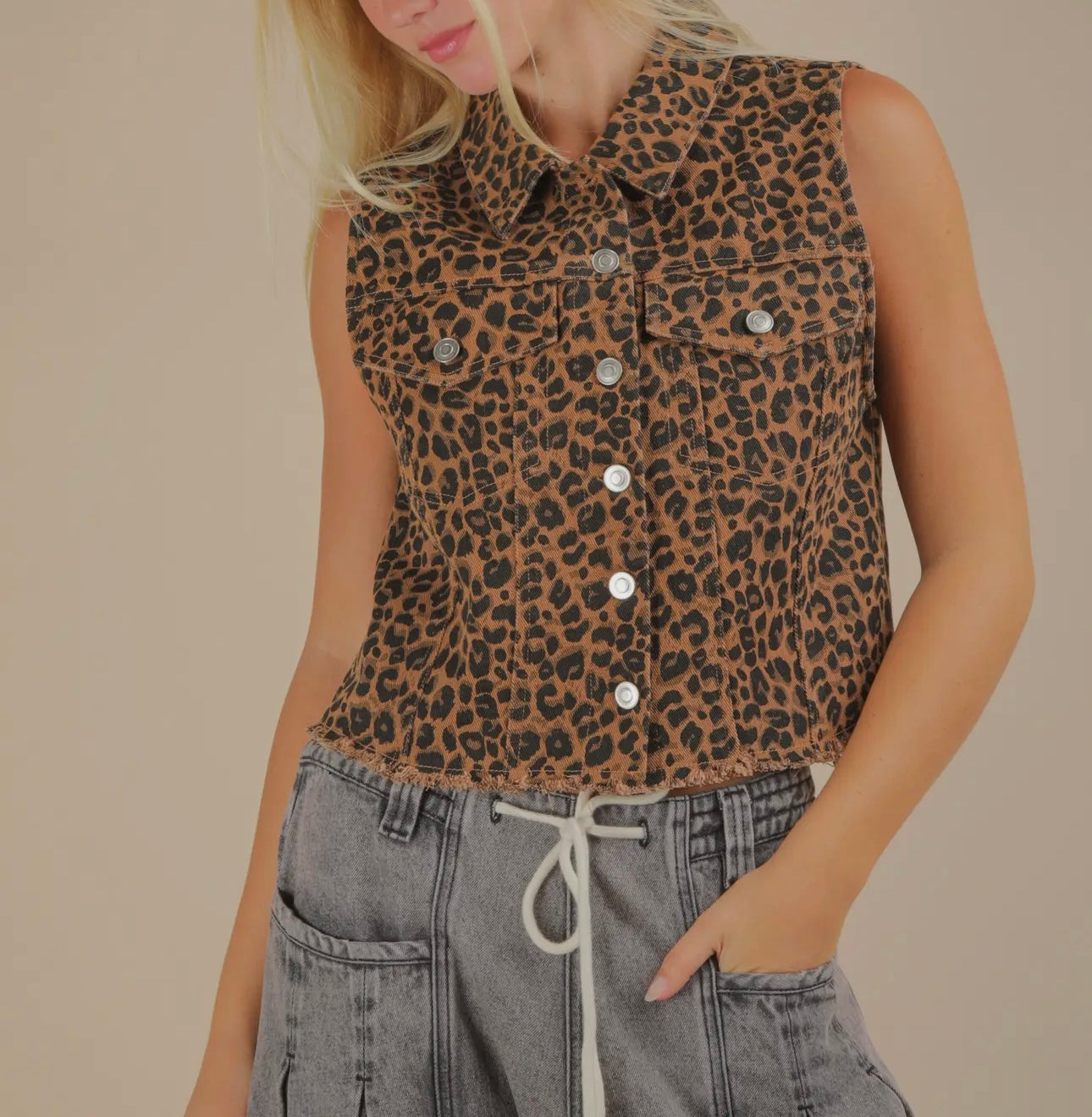 The adorable cheetah print vest is sure to spruce up your outfit.