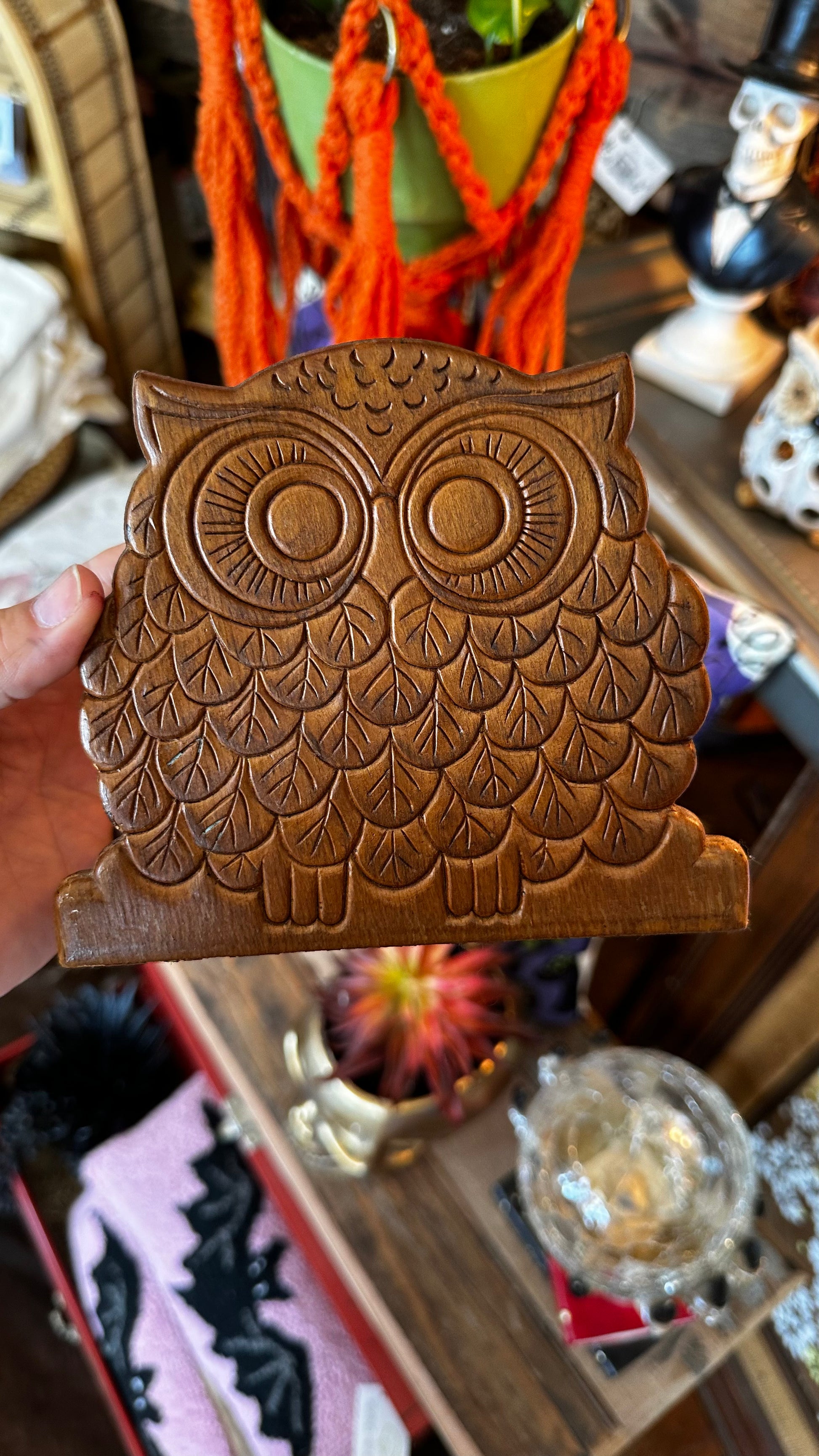 Vintage wood owl napkin holder is not in perfect shape, but a steal at $18!
