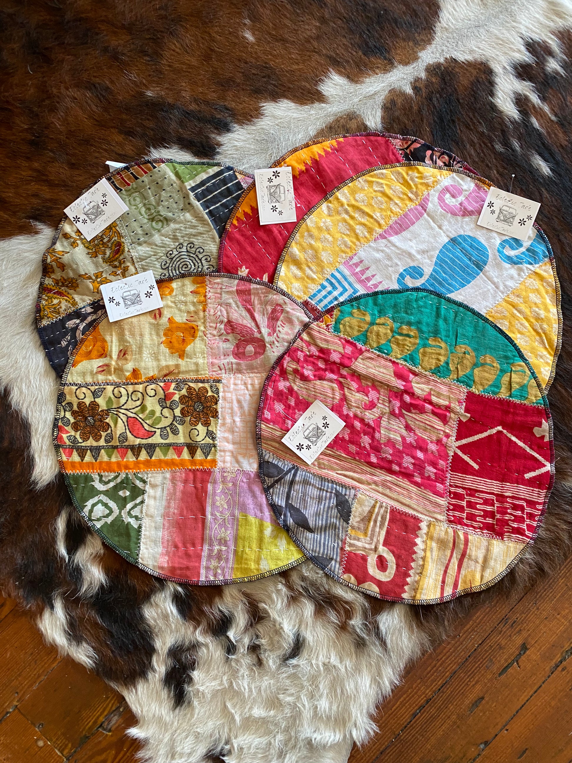 Round kantha mats